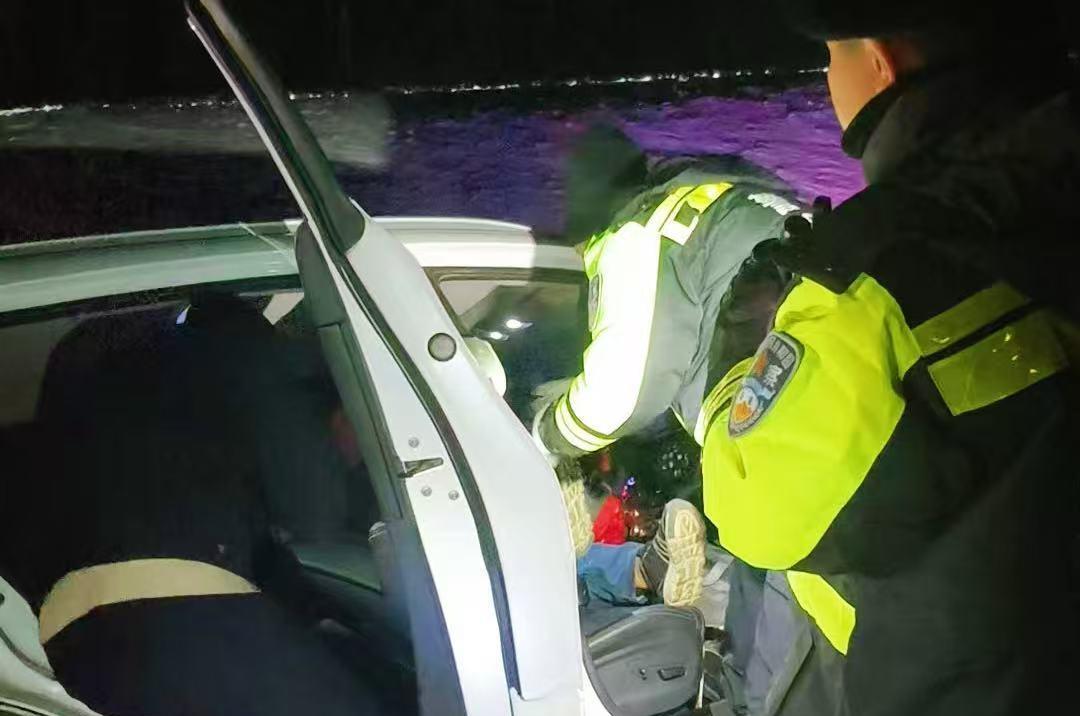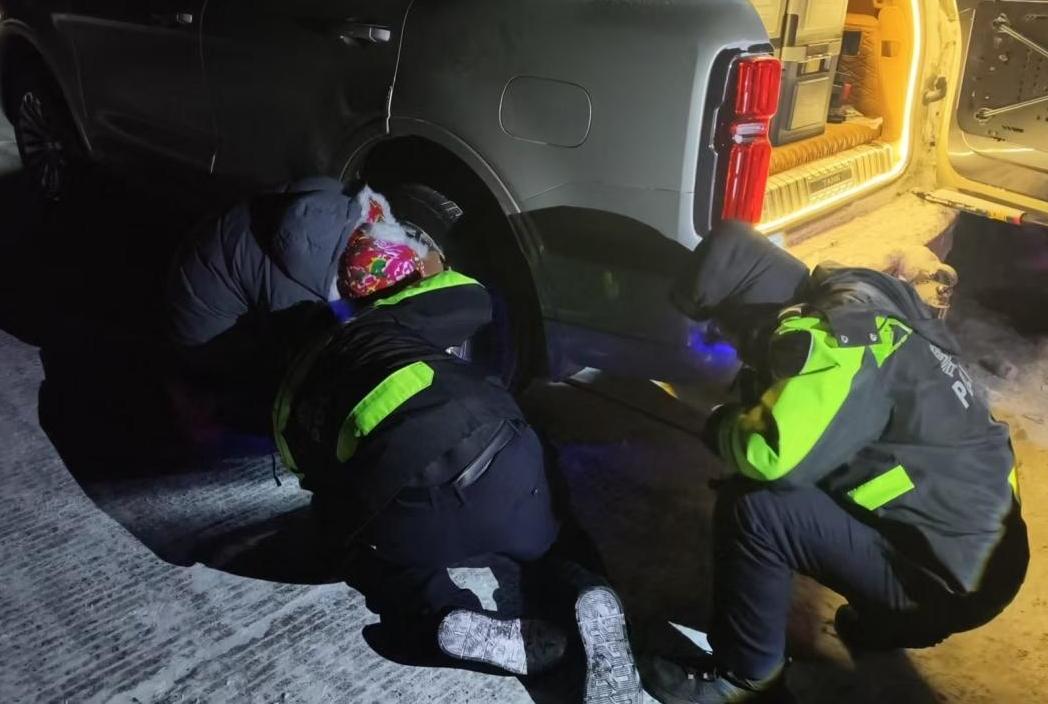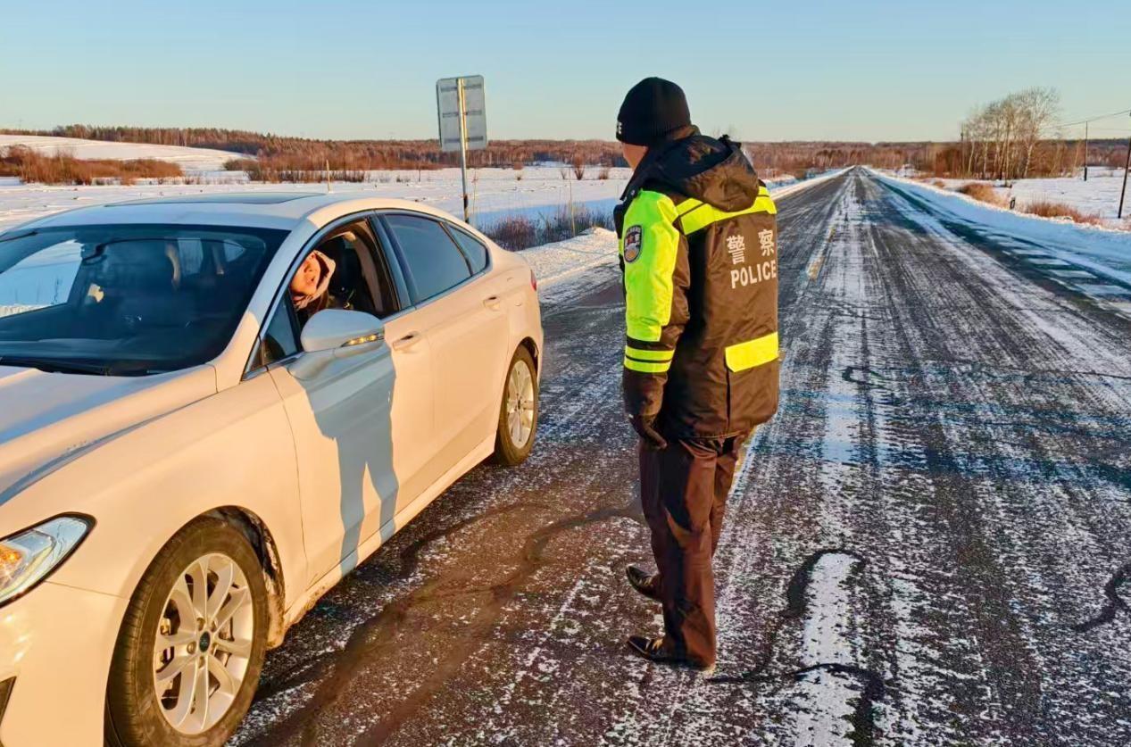 寒夜车轮爆胎 呼玛交警“警”急救援 暖心服务显担当