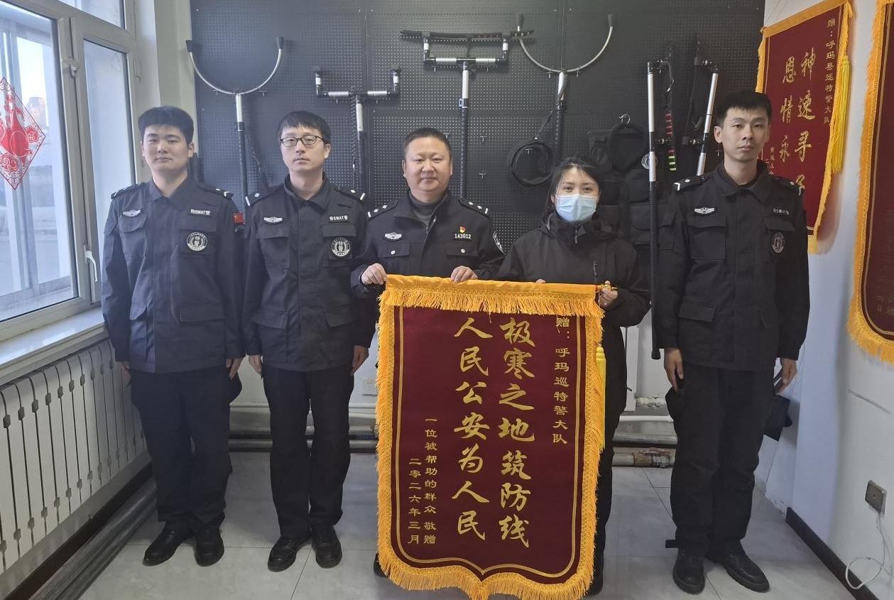 呼玛公安雪中救援受困车辆获赠锦旗
