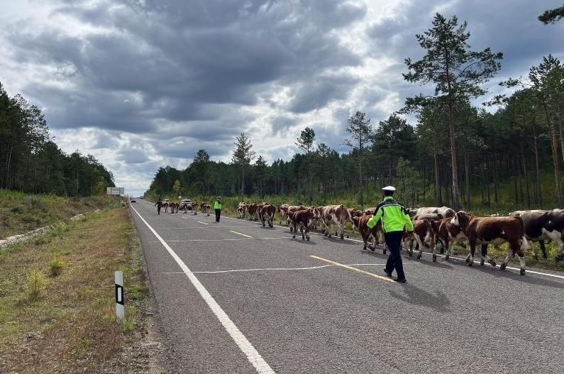 呼玛县:交警化身“赶牛卫士”一路相随保平安