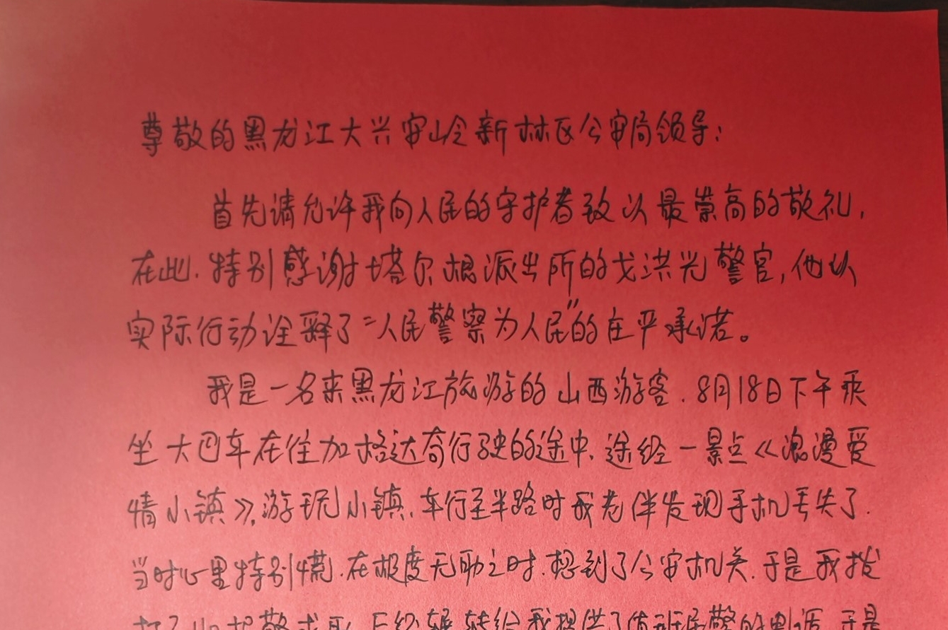 大兴安岭新林区公安局为山西游客找到遗失手机