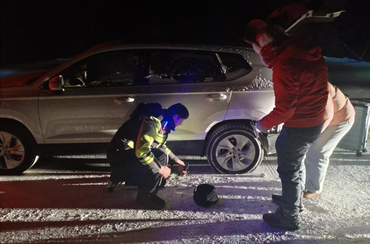 寒夜车轮爆胎 呼玛交警“警”急救援 暖心服务显担当