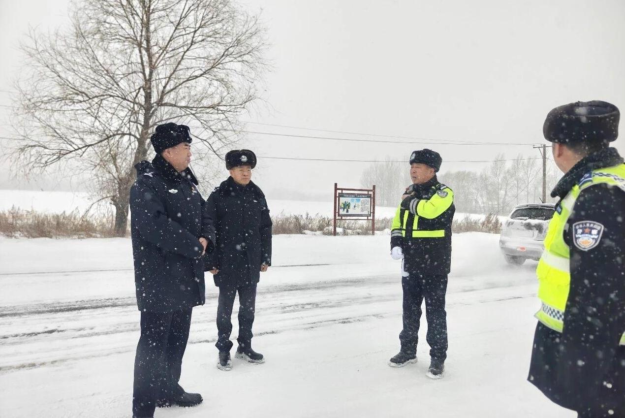 五大连池市公安局领导深入一线督导强降雪天气道路交通安全管理工作