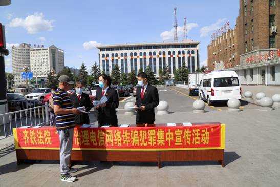 黑龙江经济网讯(乔琳)为深入贯彻落实习近平总书记对打击治理电信网络诈骗犯罪工作的重要指示精神,切实开展好全省法院打击治理电信网络诈骗犯罪宣传活动,充分发动群众,切实提高防骗意识和能力,营造全民反诈防诈的浓厚氛围,努力构建“全警反诈、全社会反诈”新格局,齐铁法院组织刑庭和综合办干警于5月26日开展了打击治理电信网络诈骗犯罪宣传活动。