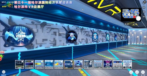 本届哈洽会线上平台共设置了29个VR展厅。其中,技术应用最新最多、智能化体验最炫酷最便捷的要数哈尔滨市VR云展厅,这也是本届哈洽会所有VR云展厅中面积规模最大,内容最丰富的展厅。