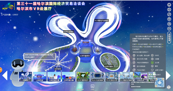 项征介绍,哈市VR云展厅总展览面积超4000平方米,分为主体形象展区、“4+4”现代产业展区、名优企业展区、区县(市)展区和自贸区展区5大展区,入驻名优企业203家,产品涉及10大类300余品种。采用了5G、VR、大数据、AI、3D、全景影像等先进、成熟、适用技术,展现多层次、数字化、立体化的模拟真实场景,给人以真实的逛展体验。如果对哪家企业的产品感兴趣,可以点击其专属视频或热点链接,进行详细了解,也可以预约洽谈。