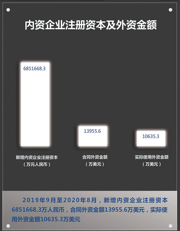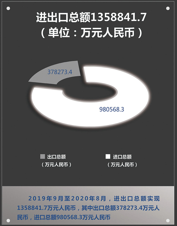 哈洽云展厅内,数说中国(黑龙江)自由贸易试验区,可以看到2019年9月至2020年8月,自贸区进出口总额实现135.9亿元人民币,新增企业4855家。