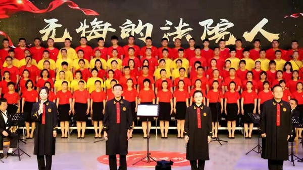 绥化市中级人民法院党组书记、院长王双近、院党组副书记、副院长赵辉及其他党组成员共同参加了此次演出,并合唱《没有共产党就没有新中国》《中国之梦》。