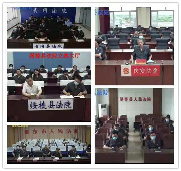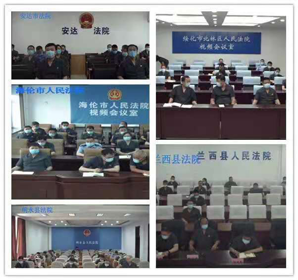 会议以视频形式召开,中院设主会场,各基层法院设分会场;全市两级法院班子成员、中层以上干部参加会议。