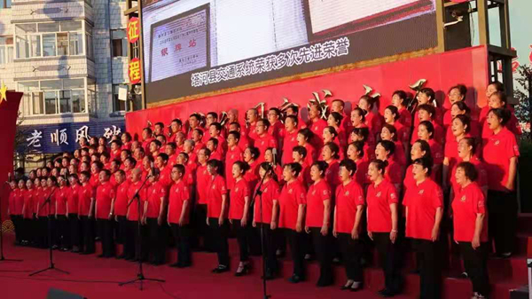 在歌声中重温百年历程,追寻红色记忆;在歌声中砥砺无悔初心,汲取奋进力量。塔河县广大职工群众在县新时代文明实践广场以大合唱的方式纵情高歌,用满腔的热忱唱出了对党的热爱,对伟大祖国的赞美。由塔河县森林之声合唱团表演的曲目《祖国颂》《我爱你中国》拉开了演出的序幕,瞬间就调动了人们的情绪,激发了人们的爱国豪情。《不忘初心》《走向复兴》《强军战歌》《忠诚于党》等一首首经典曲目表达了塔河儿女对党的忠诚与热爱,展现了塔河人奋发有为、积极向上的良好精神风貌。