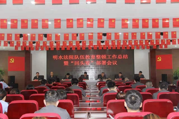 黑龙江经济网讯(孙瑛 关辉 记者马朝林)7月1日下午,明水县人民法院召开队伍教育整顿总结会暨“回头看”部署会,会议通报了明水县人民法院政法队伍教育整顿工作情况,并对“回头看”工作进行安排部署,教育整顿工作小组成员与全体干警参会。