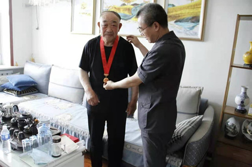 在退休老党员王连海家中,朱洪志为其颁发了“光荣在党50年”纪念章,并详细询问了他的身体情况,嘱咐要保重身体,继续保持积极乐观的心态和健康的生活方式,并详细介绍了法院近年来取得的可喜成绩和近期工作情况。