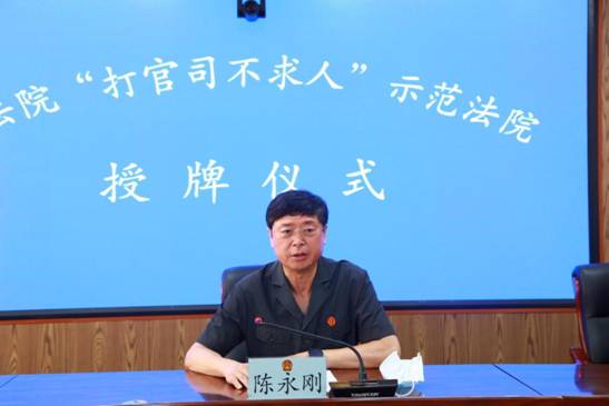 哈铁中院党组书记、院长陈永刚在授牌仪式讲话中表示,齐铁法院此次获评“打官司不求人”示范法院,是齐铁法院班子团结创新、全院干警积极工作的结果,齐铁法院在省法院和哈铁中院正确指导下,紧紧抓住立案、审判、执行等关键环节,认真研究老百姓“打官司不求人”等诸多问题,转变工作作风、规范司法行为、完善制度机制,很好地兑现了“打官司不求人”的庄严承诺。希望齐铁法院以此次授牌为新起点,继续全面贯彻落实习近平法治思想,紧密结合党史学习教育和即将开展的政法队伍教育整顿等重大活动,查找梳理老百姓“打官司求人”的现实表现,进一步改进提高审判执行工作;大力加强法院队伍司法能力和司法形象建设,全面提升审判执行工作质效和司法服务水平,全面践行“打官司不求人”的承诺;积极推进法院信息化建设,发挥信息化建设在实现“打官司不求人”及加强法院全面建设上的支撑和保障作用;进一步畅通群众信访投诉举报渠道,严格执行“三个规定”,以实际行动实现“让人民群众在每一个司法案件中感受到公平正义”的目标。