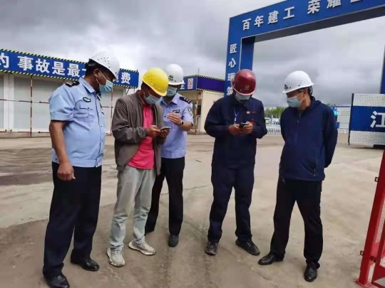 工作中,民警认真检查施工人员、施工车辆通行证是否齐全;是否“人证相符、车证相符”;施工中是否做好个人安全防护措施;施工、消防等设备是否完好;更夫是否认真履职;视频监控是否全方位、无死角;是否严格落实各项疫情防控措施等。重点检查了施工现场的消毒、通风、防护、“三宝”等防疫措施,确保疫情防控与施工安全两手抓、两不误。同时,积极向施工人员宣传并指导下载“国家反诈中心”APP,提高防范意识,严防上当受骗。