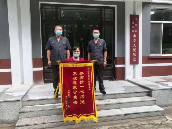 黑龙江经济网讯(孙瑛 张纾 记者马朝林)日前,梁某云从望奎县赶到绥化市北林区人民法院永安人民法庭,将一面绣有“办案快一心为民,不收礼秉公执法”的锦旗赠送给永安人民法庭法官杨光宇。梁某云称杨光宇法官秉公执法,为她解决了姐妹之间的借贷纠纷。
