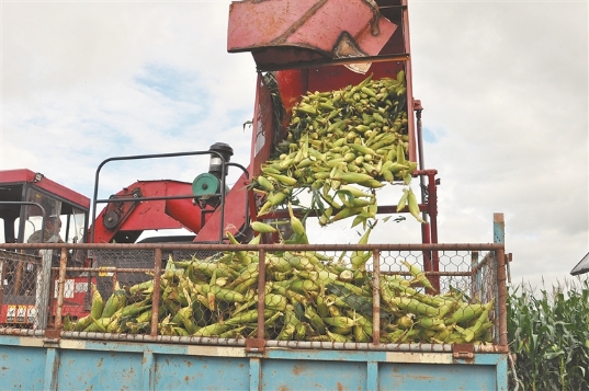 鲜食玉米收获。