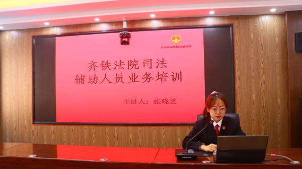 黑龙江经济网讯(陈慧迪)为加快新入职干警角色转变,提升法院审判质效,9月30日,齐铁法院召开法官助理、书记员审判业务培训会。本次培训由民庭法官助理张晓艺进行授课辅导,主要围绕法官助理、书记员的工作职责展开,结合自身的工作经历,通过实操演示向大家展示了华宇系统的应用,讲解全流程网上办案的注意事项、围绕庭审记录、文书制作、卷宗整理归档、电子扫描和上诉移送等工作进行了详细的讲解,让大家听得懂、记得住、学得会、用得上。