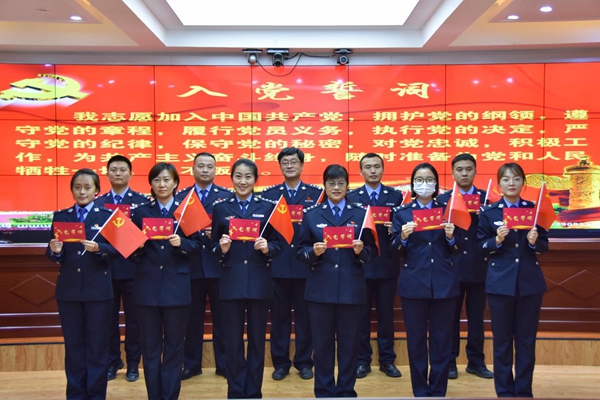 “我志愿加入中国共产党,拥护党的纲领,遵守党的章程,履行党员义务,执行党的决定……”入党誓词句句千钧,既包括了我们党对党员的基本要求,也概括了党员对党组织和党的事业所应承担的政治责任。综合党支部全体党员面对着鲜艳的党旗,高举右拳,重温入党誓词,拉开了活动的序幕。随后,组织委员宣读入党申请书,围绕“入党为什么、在党做什么、为党留什么“进行解读,带领大家回忆入党初心。最后,由党支部书记为各位党员送上“政治生日”贺卡,这一张小小的贺卡,是对党员的激励,更是鞭策,那一枚枚闪耀的党徽,是一种象征,更是一种提醒,提醒党员要时刻牢记党员身份,坚定政治信仰、牢记初心使命,用对党的热爱书写对党的忠诚。