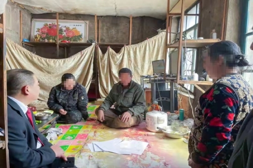图为庆安县丰收法庭法官走进农家对原被告进行调解(管志刚/摄)