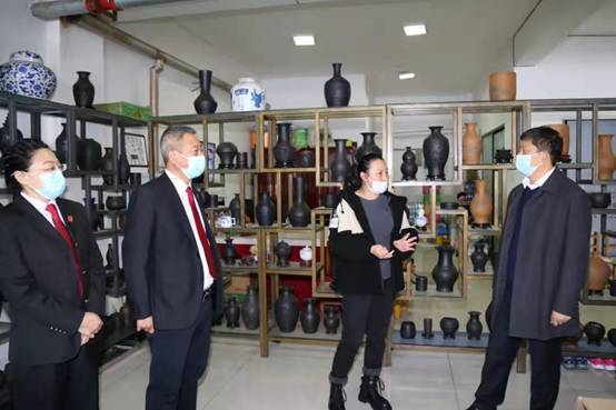 绥棱县人民法院党组书记、院长王承志走访了省人大代表、绥棱黑陶传承人赵银环(刘志福/摄)