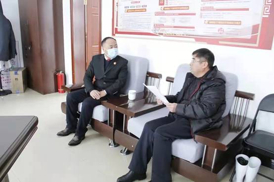 图为绥化市中级人民法院党组书记、代院长程显波走访省政协委员、绥化市委常委、统战部部长张跃文(孙瑛/摄)