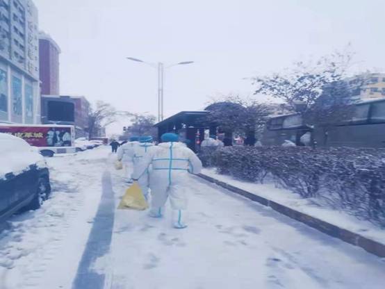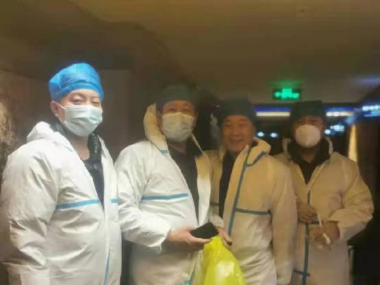 【来自“小团队”的大爱】:初冬的早晨很冷,正赶上气温骤降,走在大街上直打哆嗦。“逆行小分队”在完成第三次转运任务时已是第二天早晨5点多,此时还没到上班时间,所有人员未进行消杀,没有车辆接送,大家只能从西城客运站步行回隔离宾馆。清晨,天空还飘着雪,寒气逼人。不时有出租车从身边经过,但是他们却不敢打车,因为他们知道自己是与隔离人员密切接触的人,还在隔离之中,绝不能给他人带去安全隐患。驻地房间都在七楼和八楼,走到宾馆已经疲惫不堪,因为防疫需要,宾馆的电梯不能乘坐,队员们又从一楼爬到七楼和八楼,来不及洗漱和吃饭,困得倒头便睡。