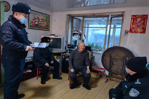 同时,社区民警再次来到居住在站前街4组的王大爷和张大娘家中,两人没有子女,张大娘身体有残疾没有劳动能力,王大爷靠捡垃圾维持生计,一直以来是派出所最为牵挂的一家人,社区民警时常帮助老人劈柴火、干家务,解决老人生活中遇到的困难。在王大爷家中,民警面对面与老人交谈,详细了解老人过冬有无患病治疗、冬煤取暖等方面的实际困难,叮嘱其今后生活上有任何困难都可以与派出所联系,派出所一定会竭尽全力进行帮助,并再次为老人送来慰问品。