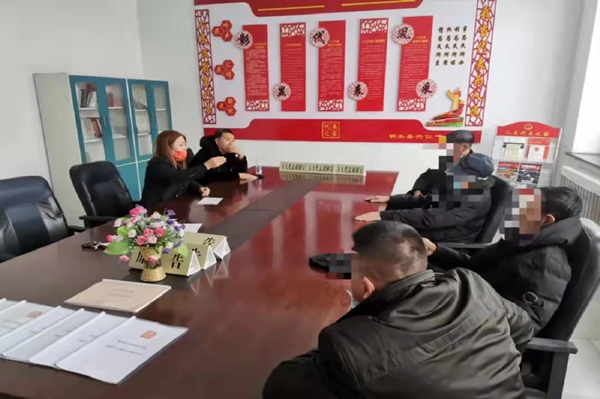 2021年11月,兴仁镇人民政府、兴仁法庭和兴仁镇派出所于兴仁法庭调解室共同为该案件进行调解。为了更好地梳理案件事实,法庭负责人朱双邀请了该村前任村支书、现任村支书以及数位知情村民,把在场多人对案件的陈述形成笔录,通过对多份笔录的核对和梳理,找出案件疑点并通过询问和讨论,总结出二人多年来争议焦点、起因及事实,在向二人阐明法律关系后,在三方多重调解下,老杨的态度也有了转变,同意和老范制定调解方案。终于,该起信访积案得到妥善处理,二人多年的心头事也得以解决。