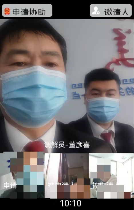 案件受理后,绥棱县人民法院靠山法庭庭长董彦喜与二被告电话沟通后得知,原告所诉内容属实,且二被告有给付意愿,只是现在手里没有这么多钱,请求法庭主持调解。二被告现在深圳打工,因工作性质和疫情原因无法到庭调解,且二被告工作时间与法庭上班时间重合,经征求原被告双方意见,董彦喜决定利用午休时间通过多元调解平台进行网上调解。