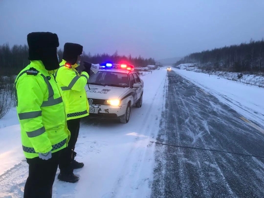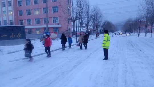 黑龙江经济网讯(姚健 顾兰 记者马朝林)12月20日凌晨,大兴安岭图强辖区迎来降雪天气。气温骤降导致国道G111图强段及镇内主要道路路面积雪结冰,同时伴有风吹雪现象,能见度较低,给广大群众出行带来不便。面对恶劣天气,为确保雪天道路交通安全畅通,图强公安分局交警大队以雪为令,根据应急预案,迅速组织全警参与疏堵保畅,加大路面管控和指挥疏导力度,全力严防重特大道路交通事故。