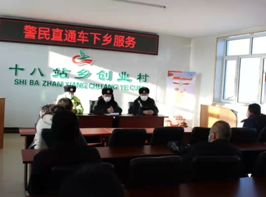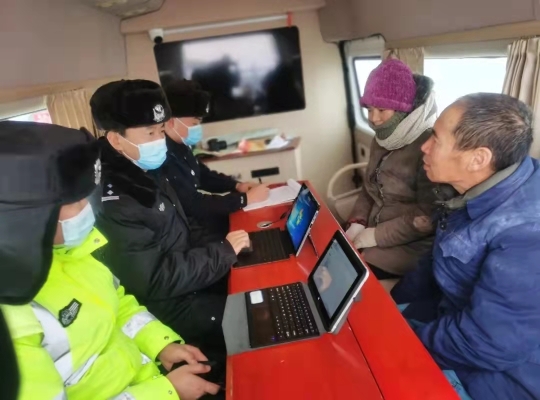 “警民直通车”沿着中国北方历史上著名的“黄金之路”出发,从位于塔河境内的古驿站二十二站林场到十八站鄂伦春民族乡,历时6天,行程800余公里,遍及辖区4镇、3乡、11个行政村。每到一处,轮训民警都不顾旅途疲惫,在一对一带训教官的指导下迅速调试车内设备,切实把所学知识融入到工作岗位,并将服务理念内化于心,外化于形,用一张笑脸、一句问候、一片真诚的规范标准去服务每一位前来办理户籍、身份证、车驾管等业务的群众,让偏远乡村的群众在家门口就能享受公安机关提供的“规范、便捷、文明、高效“的窗口服务。同时,冬季整训活动小分队以“法制宣传进乡村”为主题。通过入户走访、法律咨询、发放宣传资料等形式,向群众宣传扫黑除恶、消防安全、“一盔一带”安全出行、疫情防控等相关知识和法律政策,现场讲解防范电信诈骗的安全防范知识,面对面、手把手地帮助群众下载注册“国家反诈中心”APP ,提升边境村屯群众安全防范意识。
