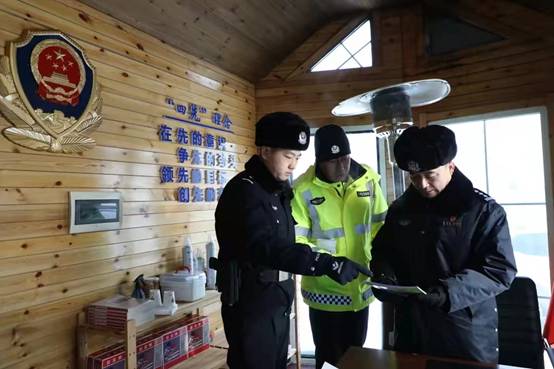 在最北景区警务室,图强公安分局党委书记、局长王连义实地查看了警务室阵地建设、队伍管理等工作,详细了解了警务室工作台账设立情况,对警务室在“交治合一”警务机制改革、“护边护游”、践行“五心服务”等工作进行现场指导,随后,与警务室民警深入景区内站岗执勤,热情服务游客。王连义表示,热烈欢迎游客到中国最北点体验冰雪旅游,详细介绍了最北景区警务室的设立理念、工作职能、服务范围等情况,并仔细询问游客的旅游体验以及对公安工作的建议意见。