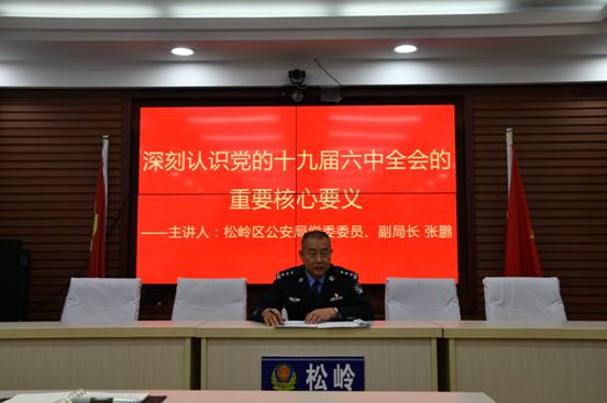 黑龙江经济网讯(刘智慧 记者马朝林)在冬季整训工作中,大兴安岭松岭区公安局按照冬季整训“关键少数”必练工作要求,1月6日,公安局党委委员、副局长张鹏走上讲台,以《深刻认识党的十九届六中全会的重要核心要义》为题,为全局民警讲了一堂主题鲜明、内容深刻的专题党课。