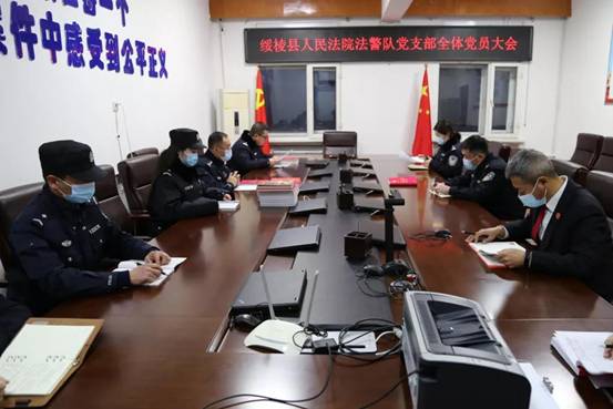 会议首先对《中华人民共和国简史》一书进行了集体学习。随后,支部书记曹劲松带领全体党员共同梳理了2022年支部建设及主题活动开展思路。2022年,绥棱县法院法警队党支部将紧紧围绕学懂弄通做实党的创新理论,把习近平新时代中国特色社会主义思想转化为推动法警队发展的实际行动,不断促进党建工作与业务工作深度结合,充分发挥党组织在全体法警中的战斗堡垒作用。