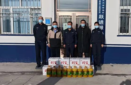 黑龙江经济网讯(刘天宇 记者马朝林)1月24日,加格达奇林业局东风林场党支部书记包薇,副书记、场长范思军,白桦林场场长周春友带领林场相关人员走进加林公安分局跃进派出所进行春节前慰问,感谢派出所公安民辅警用实际行动践行了全心全意为人民服务的宗旨,在维护辖区社会稳定等方面做出的努力和贡献,并送来了慰问品。