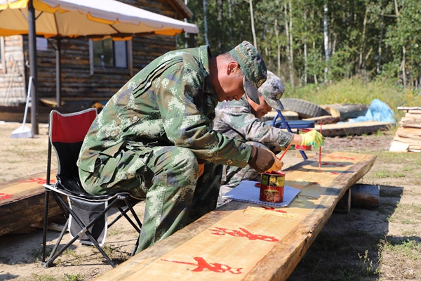 阿木尔林业局职工正在制作旅游导览牌,加强旅游基础设施建设(王力 摄)