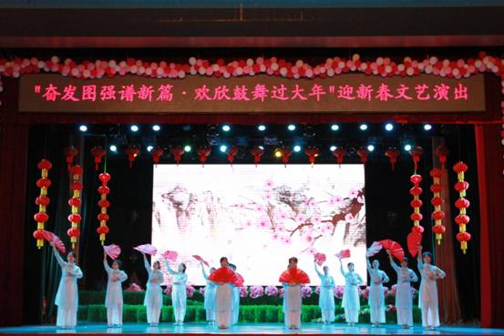 图强林业局文艺工作者和爱好文艺的群众演员共同表演水韵响扇舞《青春魅力》(赵明 摄)
