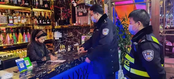 工作中,民警向辖区宾馆、歌厅等场所宣传了消防安全、应急处置、疫情防控等知识,仔细检查了各场所的消防设施、人员登记等情况。针对当前疫情防控工作,要求各行业场所要提高思想认识,如遇中、高风险地区人员要及时上报,并做好从业人员日常体温检测、公共场所区域消毒和顾客的测温、登记以及扫码工作。