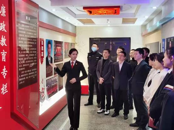 在党建文化建设长廊,大家参观了法院的党建工作和党建文化展板。