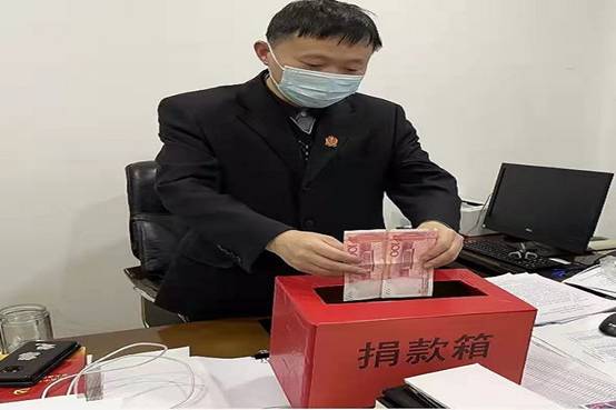 党组书记、院长郭延泽带头来到捐款箱前,将带着浓厚爱心的捐款投入到捐款箱中,副院长尹秋胜、汤立波,党组成员、专职审委会委员李立木、民一庭庭长、民二庭庭长、立案庭庭长、办公室主任、法警队队长……都纷纷放下手头的工作,来到捐款箱前踊跃捐款,在院领导的带领下,干警们积极踊跃捐款,募集捐款1万余元。