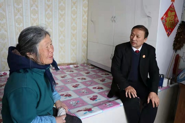 送温暖,心系贫困孤寡老人。16时15分,第一党支部全体干警来到所帮扶的孤寡老人王桂荣家中,为独守老人送去了大米、面粉、水果等生活物资。在法院扶贫工作中,第一党支部了解到,该村王桂荣老人今年70岁,中年丧偶,家中生活困难,缺乏关爱和照顾。近日其儿子又不幸离世,经历了中年丧夫、晚年丧子,白发人送黑发人的痛苦。第一党支部干警来到王桂荣的家中,帮助老人打扫院子、清理垃圾、擦拭门窗。公德庆坐在老人身边,详细询问了她的生活起居、身体状况和即将到来的春耕生产等情况,叮嘱她要保重身体,有困难一定要向法院帮扶队员反映,法院干警一定会竭尽全力给予帮助。