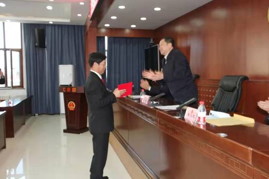 望奎县人大常委会为钱立军同志颁发任命证书,随后进行宪法宣誓。