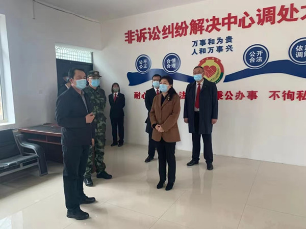于世伟一行实地查看非诉讼纠纷解决中心、调解工作站等建设情况,详细了解非诉纠纷矛盾化解工作开展情况,现场听取了调解员与当事人有关物业纠纷的调解过程,征求对法院工作的意见建议及评价期盼,并与加格达奇区政法委、司法局以及法院同志就如何进一步开展好社会综合治理和平安兴安建设进行交流探讨。
