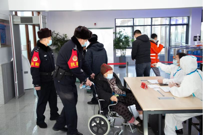 在核酸检测工作中,民警们值班结束后,放弃轮休时间,与医护、社区工作人员在现场维持秩序,提醒群众保持安全距离,加强现场巡逻管控,安抚群众情绪,耐心细致向群众讲解政府公告、防疫政策及宣讲反诈知识。民警们在确保核酸检测工作平稳有序进行的同时,积极主动做好服务保障工作,在现场一边维持现场秩序一边帮助老人及行动不便人群快速完成检测,减少人员滞留,涌现了很多暖心的场面。