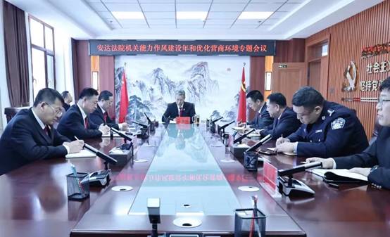 黑龙江经济网讯(王全友 张多 记者马朝林)为贯彻落实省、市委和省、市法院各项工作部署,对照省法院一体化管理指标,查摆问题,分析原因,找出症结,并就进一步做好机关能力作风建设年和优化营商环境工作作出安排部署,近日,安达市人民法院召开能力作风建设年和优化营商环境专题会议,党组书记、院长孙宏辉主持会议并讲话,全体班子成员参加会议。
