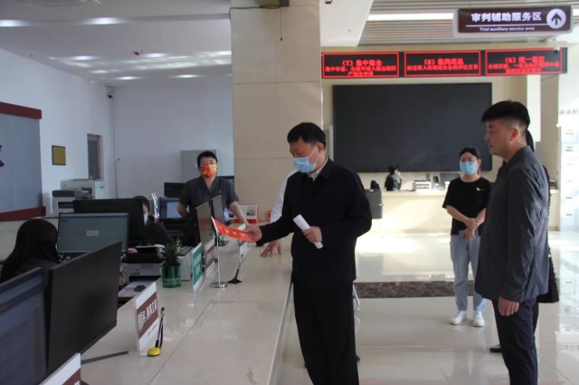 郭延泽亲身体验了法院诉讼服务工作,从安检到立案流程,从自助服务到诉讼服务平台、“一站式”调解平台和跨域立案等工作,从“办事群众”的角度了解立案庭工作开展情况,听取现场群众意见,摸清工作中存在的差距和不足,并对立案过程中存在的问题提出了优化建议,促使司法服务质效进一步提升。