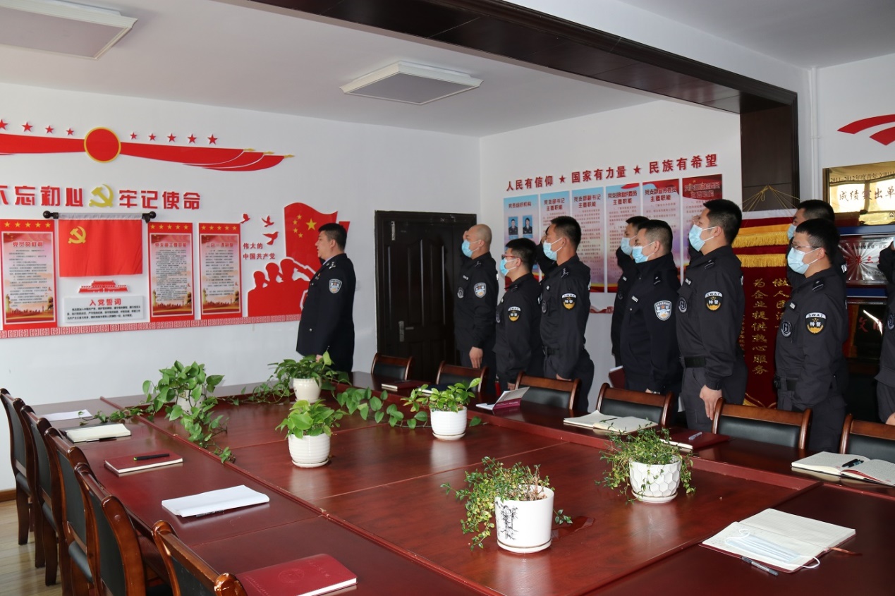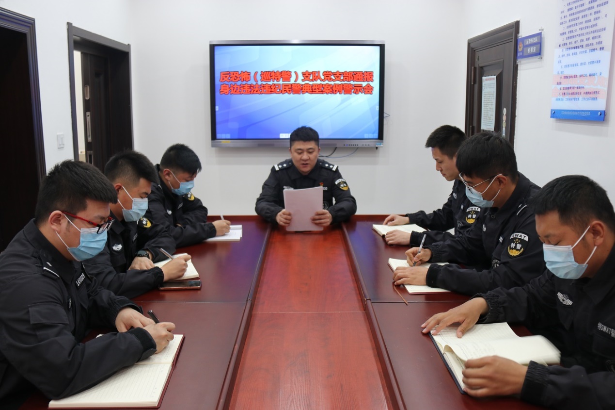 抓好主题教育。通过开展“重温入党誓词,对党宣誓”主题教育活动、“牢记训词嘱托,忠诚担当使命”主题演讲、“重走红军长征路,不忘初心跟党走”心理团建活动等系列具有公安特警特色的党建活动,教育引导民警坚定理想信念,筑牢政治忠诚,切实履行好党和人民赋予的新时代使命任务。自新冠肺炎疫情防控阻击战打响以来,支队党支部积极引导广大干警投身疫情防控工作,全体青年干警纷纷递交入党申请书和签下请战书,充分发扬连续作战的精神、务实高效的作风,不怕疲劳、拼搏奉献,全力以赴保障人民群众生命健康,坚决打赢疫情防控阻击战。