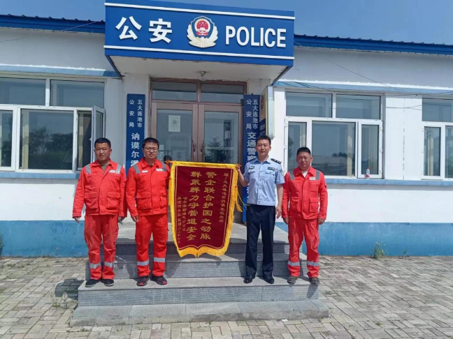 6月27日上午,哈尔滨某公司黑河作业分公司工作人员来到讷莫尔派出所,将写有“警企联合护国之动脉,群策群力守营道安全”的一面锦旗赠送给讷谟尔派出所,对讷谟尔派出所民警主动作为,以实际行动为企业排忧解难、维护百姓权益表示感谢。