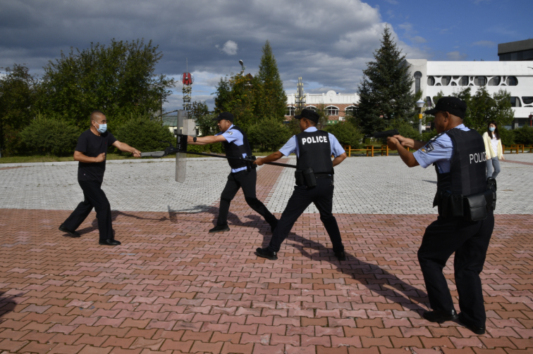 处置个人极端案事件演练现场(刘智慧/摄)。