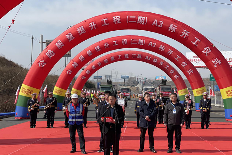 黑龙江经济网讯(刘锋 刘海东)近日,“G229饶盖公路”质量提升工程(二期)在项目A3标段正式开工,开工典礼仪式上,七台河市交通运输局局长穆永丰,市交通运输局副局长王玉罡,项目公司副总经理姜殿坤,A3标段项目经理秦波等纷纷致辞,标志着质量提升(二期)A3标段正式开启建设序幕。
