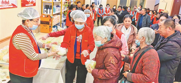 志愿者为老年人提供早餐。本报记者 吴树江摄